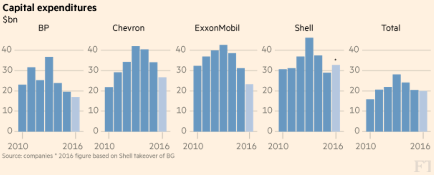 There is some pretty dramatic stuff happening within the fossil fuel industries these days; low oil prices, profit loss, canceled projects and downsizing — to name a few. In this blog, I’ll unpack just a small bit of what’s going on, but the longer story is all germane to the divestment discourse. Before I get started, I should say that this post was inspired by a recent Financial Times article — one of the world’s leading [right wing] business newspapers. The article, an important indicator itself, was exploring the very real potential of a structural downfall for fossil fuels. Let’s dive in…