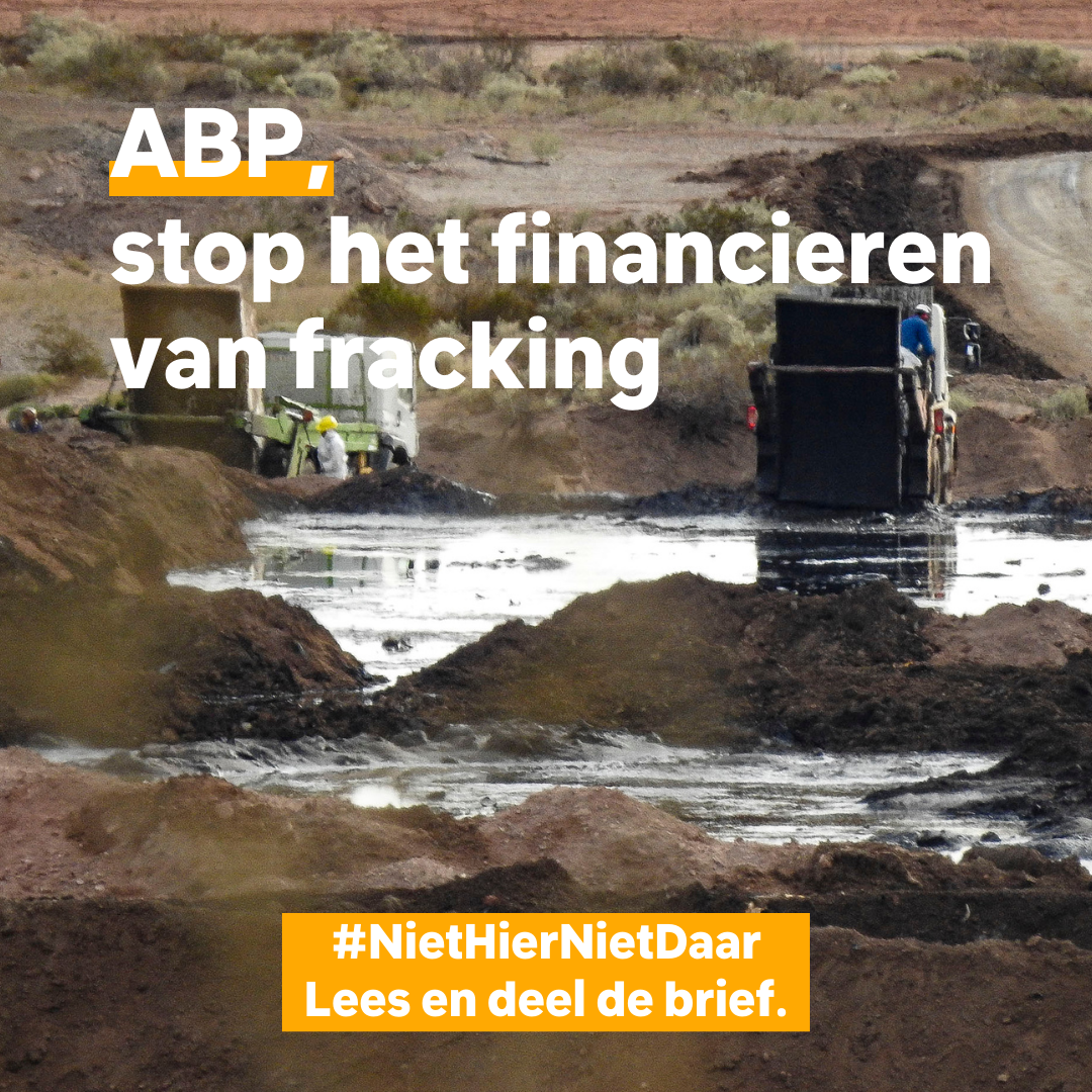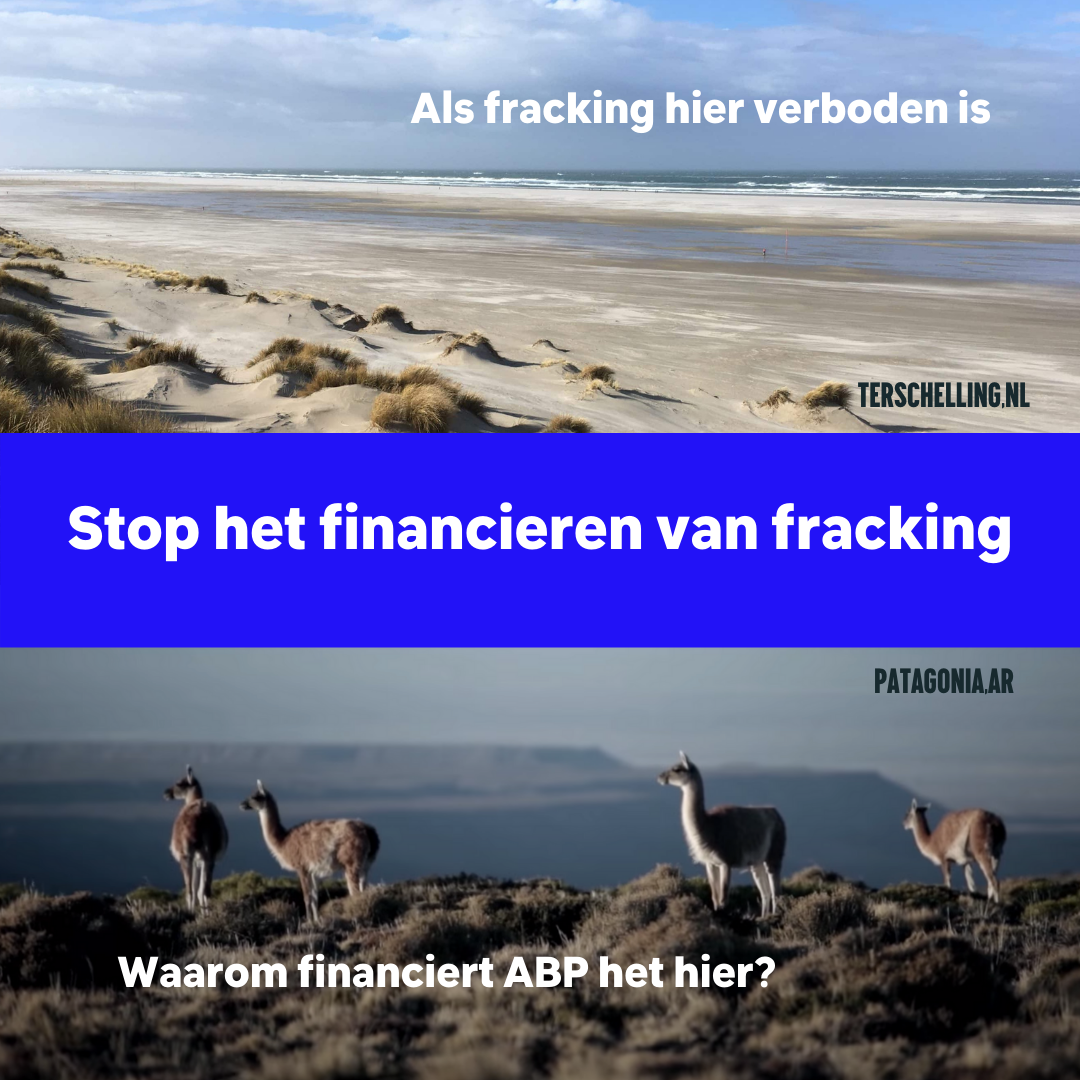 Als fracking niet mag in ons land, waarom dan wel elders? Het is onacceptabel dat bedrijven als Shell en Total hun vervuilende activiteiten naar Argentinië verplaatsen en daar olie en gas opboren ten koste van levens. Dit heet klimaatkolonialisme, en ABP is hiervoor medeverantwoordelijk door hun investeringen.