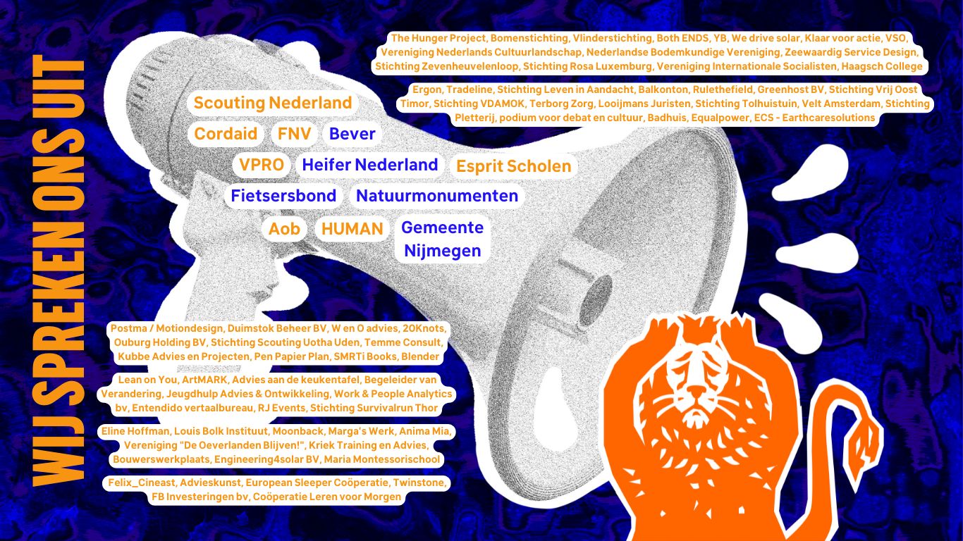 📢 Met onze ‘Spreek je uit’-groepen zorgen we dat steeds meer organisaties zich uitspreken tegen ING’s fossiele beleid. Zo voeren we de druk op.