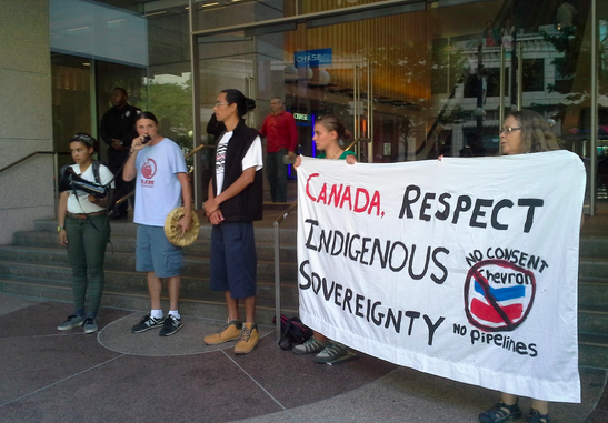 Supporters were asked to hold solidarity actions targeting Chevron investors’ offices in their towns. Having been to the camp this past winter and seen the powerful decolonizing work underway, I had to answer the call to action.